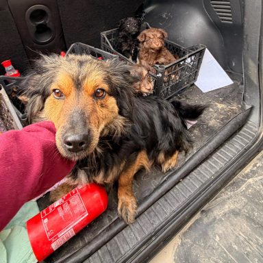 Am 03.03.2026 kam ein Paar verweint und völlig verzweifelt in unser Tierheim. Im Kofferraum waren Varda und ihre Welpen: Vana, Josie, Juni, Pepe, Anarion & Gimli, die sie zuvor mitten auf der Strasse gefunden hatten. Niemand wollte ihnen helfen, wie hätte Andra da nein sagen können, obwohl auch ihr Tierheim überfüllt war.